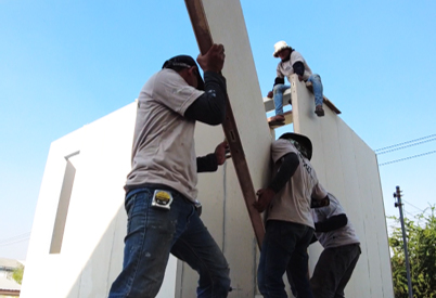 ได้สะดวก โดยไม่ต้องใช้เครื่องจักรหนัก ใช้เพียงแรงงานไม่กี่คนก็ทำงานได้ตั้งแต่ต้นจนจบได้ เนื่องจากมีการออกแบบระบบการติดตั้งไว้อย่างละเอียดตั้งแต่ในโรงงาน ทำให้สามารถนำแผ่นโครงสร้างสำเร็จรูป มาเชื่อมต่อกันได้อย่างรวดเร็วและแม่นยำ ลดขั้นตอนการทำงานซึ่งส่งผลทำให้ช่วยลดเวลาการทำงานได้อย่างมาก